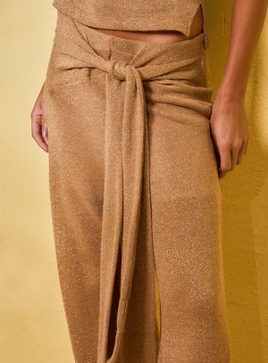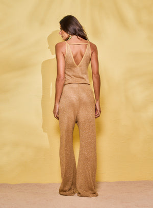 Calça Pantalona Metalizada Bege/Dourado