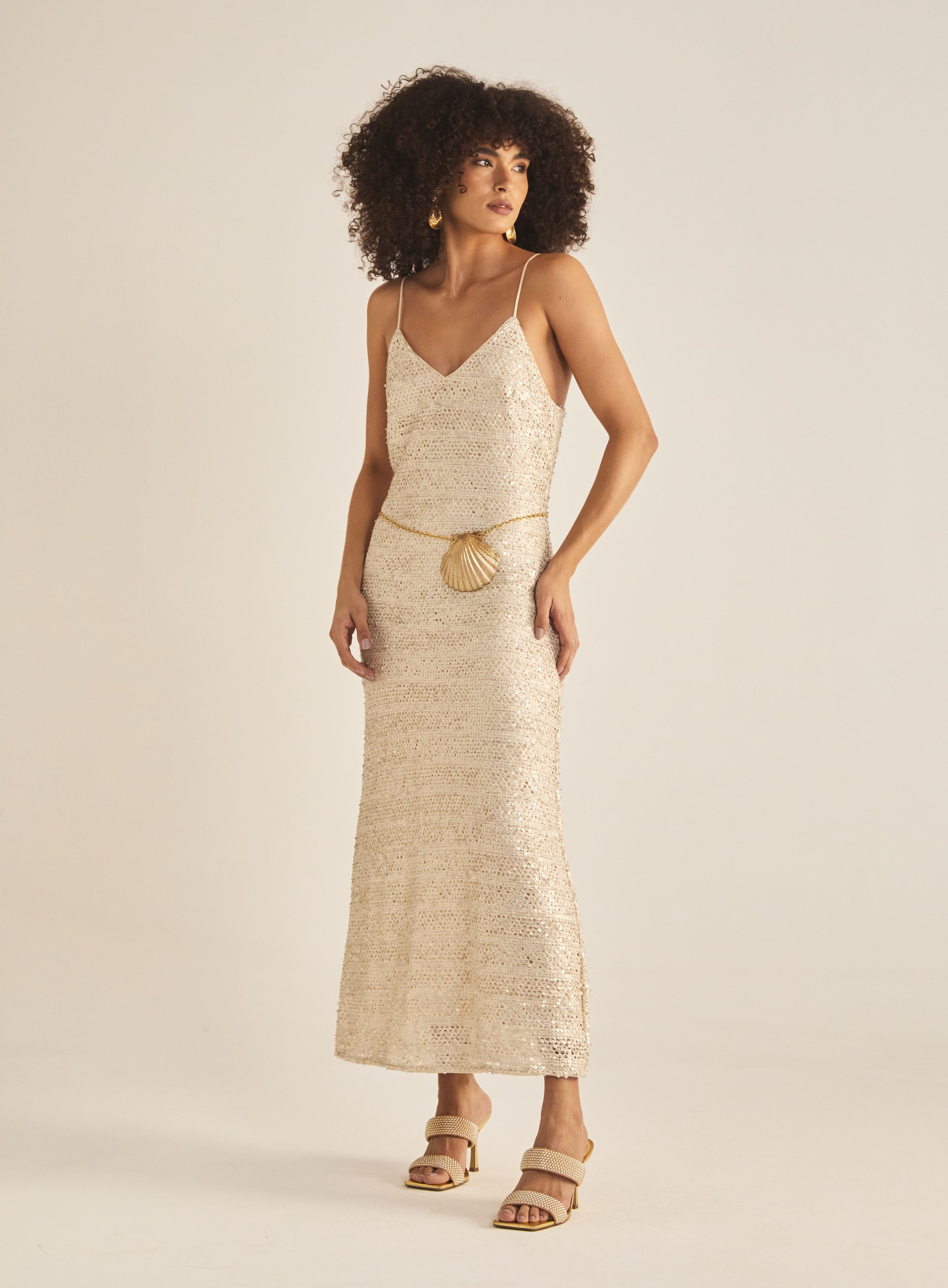 Product Vestido Paetê Bege Gipsy - https://ikky.com.br/products/vestido-paete-bege-gipsy